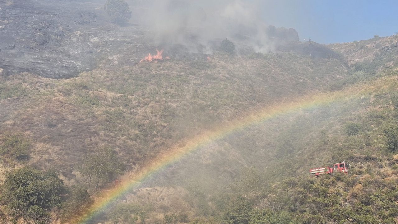 Balıkesir’in Marmara Adası’nda çıkan orman yangınına havadan ve karadan müdahale sürerken, rüzgarın etkisiyle alevlerin Çamlık bölgesine de sıçradığı belirtildi. (DHA)