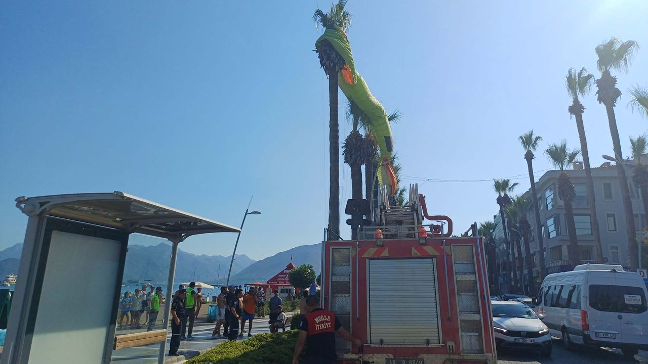 Marmaris'teki bir su sporları işletmesine bağlı paraşütle havalanan iki kişi, saat 17.00 sıralarında iniş için uygun yer aramaya başladı. bu sırada rüzgar aniden yön değiştirdi. Bunun üzerine paraşüt, sahildeki palmiye ağaçlarından birine takıldı. Çevredekilerin ihbarı üzerine olay yerine itfaiye ekipleri sevk edildi. Paraşüt ve iki paraşütçü kısa sürede güvenli şekilde ağaçtan indirdi. Kazayı yara almadan atlatan iki paraşütçünün sağlık durumlarının iyi olduğu öğrenildi. (DHA)