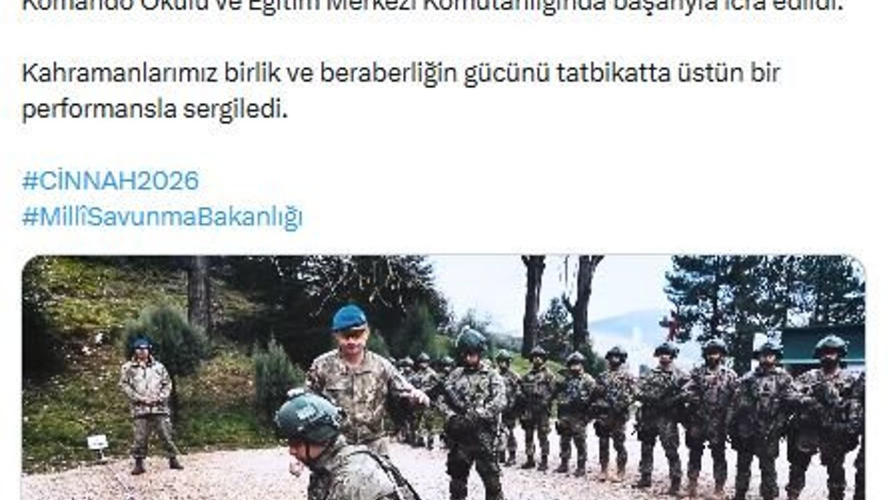 Bakanlığın sanal medya hesabından yapılan açıklamada, 'Birlikte hazır, birlikte güçlü. Türkiye-Pakistan Ortak Komando Tatbikatı (CİNNAH-2026), Dağ, Komando Okulu ve Eğitim Merkezi Komutanlığında başarıyla icra edildi. Kahramanlarımız birlik ve beraberliğin gücünü tatbikatta üstün bir performansla sergiledi' denildi. (DHA)