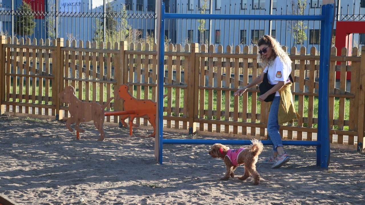 Samed Aydın SUN/KAYSERİ, (DHA)- ÇEVRE, Şehircilik ve İklim Değişikliği Bakanlığı'nın koordinasyonunda Toplu Konut İdaresi (TOKİ) Başkanlığı tarafından yaptırılan ve 1 milyon 260 bin metrekare alanı ile Türkiye'nin en büyük millet bahçelerinden biri olan Kayseri Recep Tayyip Erdoğan Millet Bahçesi’nde yer alan köpek eğitim parkurunda uzman eğitmen eşliğinde patili dostların eğitimi yapılıyor. Eğitim sonrası yapılan yürüyüşle de köpeklerin stres seviyeleri azaltılıyor.