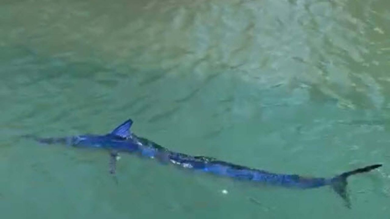 Fırat AKAY/ BODRUM (Muğla), (DHA)- MUĞLA'nın Bodrum ilçesinde, nesli tükenme tehlikesi altında olan mavi yelken balığı, kıyıda bir kişi tarafından zıpkınla vuruldu. O anlar cep telefonu kamerasıyla kaydedilirken, Bodrum Bölge Liman Başkanlığı tarafından balığı avlayan kişiye 12 bin 660 TL para cezası uygulandı.