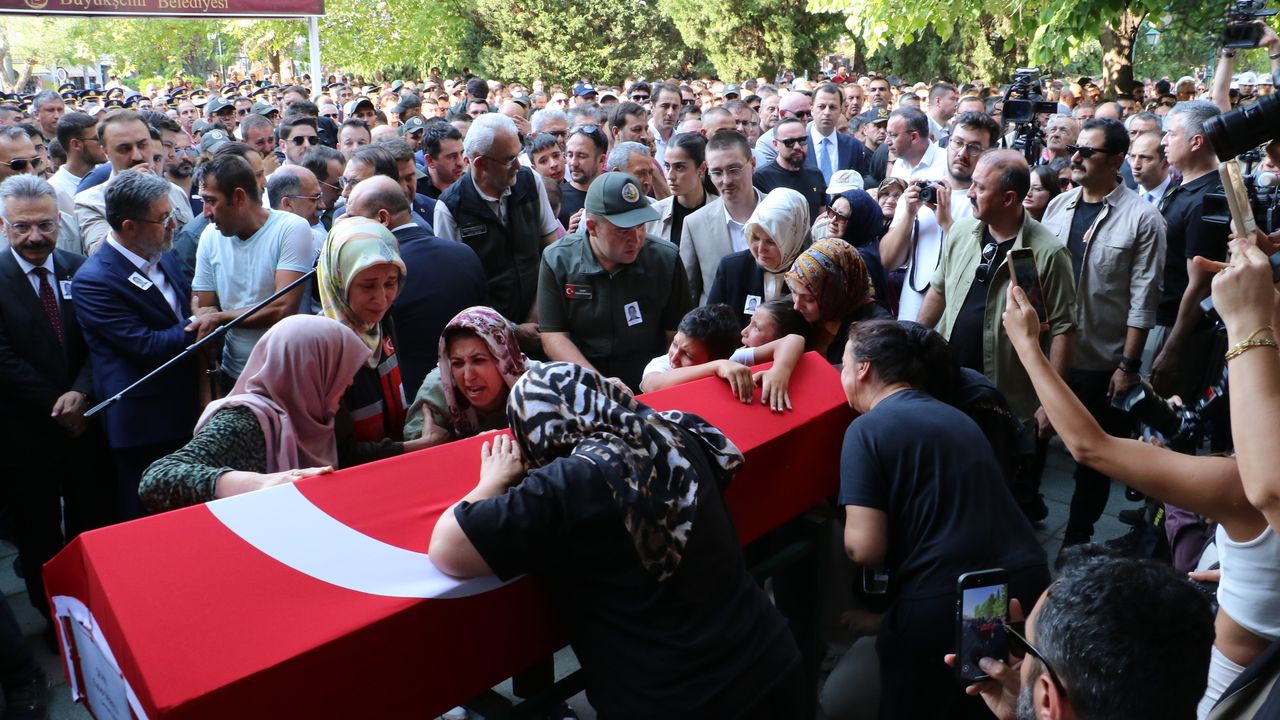 Engin ÖZMEN- Batuhan KILIÇ/ ESKİŞEHİR, (DHA)- ESKİŞEHİR’in Seyitgazi ilçesindeki orman yangınına müdahale sırasında şehit olan orman işçilerinden evli ve 2 çocuk babası Eyüp Dereli (37), son yolculuğuna uğurlandı. Eda Dereli eşinin tabutunun arkasından yürüyerek ‘Eyüp seni çok seviyorum, senden başka kimseyi sevmeyeceğim.” diye ağladı.