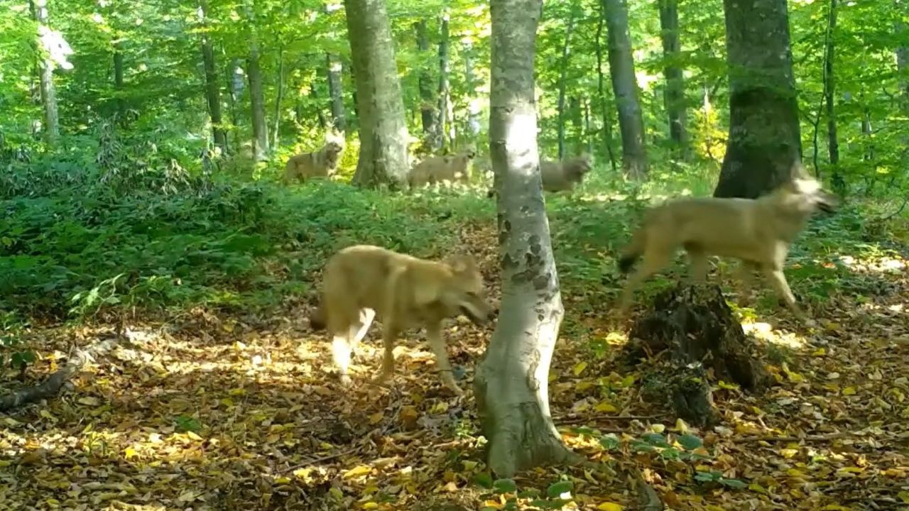 Esra TÜRKER/BURSA, (DHA)-BURSA'da yaban hayatı görüntülemek için kurulan fotokapanlara, kurt sürüsü yansıdı. 7 kurt, ağaçların arasında gezinirken görüntülendi.