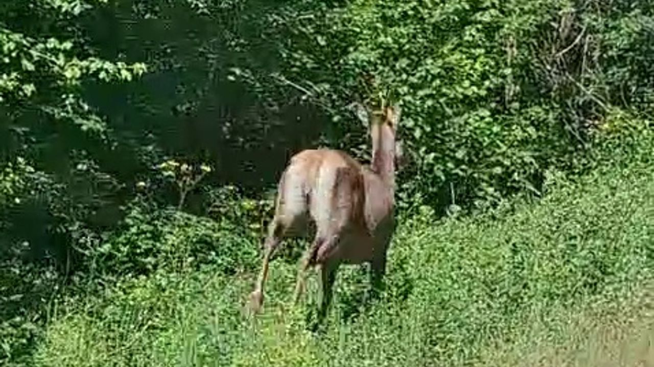 Levent TÜYSÜZ/PAMUKOVA(Sakarya)(DHA)- SAKARYA'nın Pamukova ilçesinde ormana yakın yola çıkan karaca, cep telefonu ile görüntülendi.