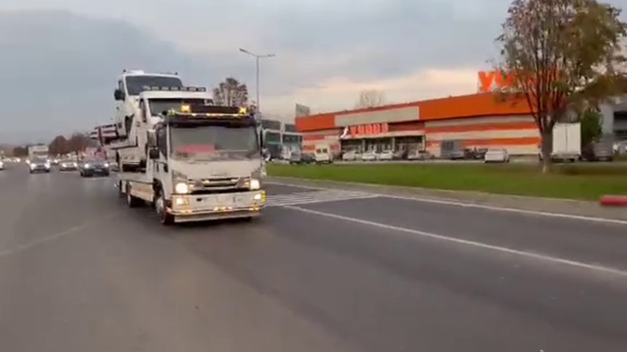 Musa KESKİN/DÜZCE, (DHA)- DÜZCE’de, sürücünün, oto kurtarıcı aracının üzerine yüklenen 2 oto kurtarıcıyla trafikte ilerlediği anlar, çevredekilerin cep telefonuyla kaydedilip, sosyal medyada paylaşıldı.