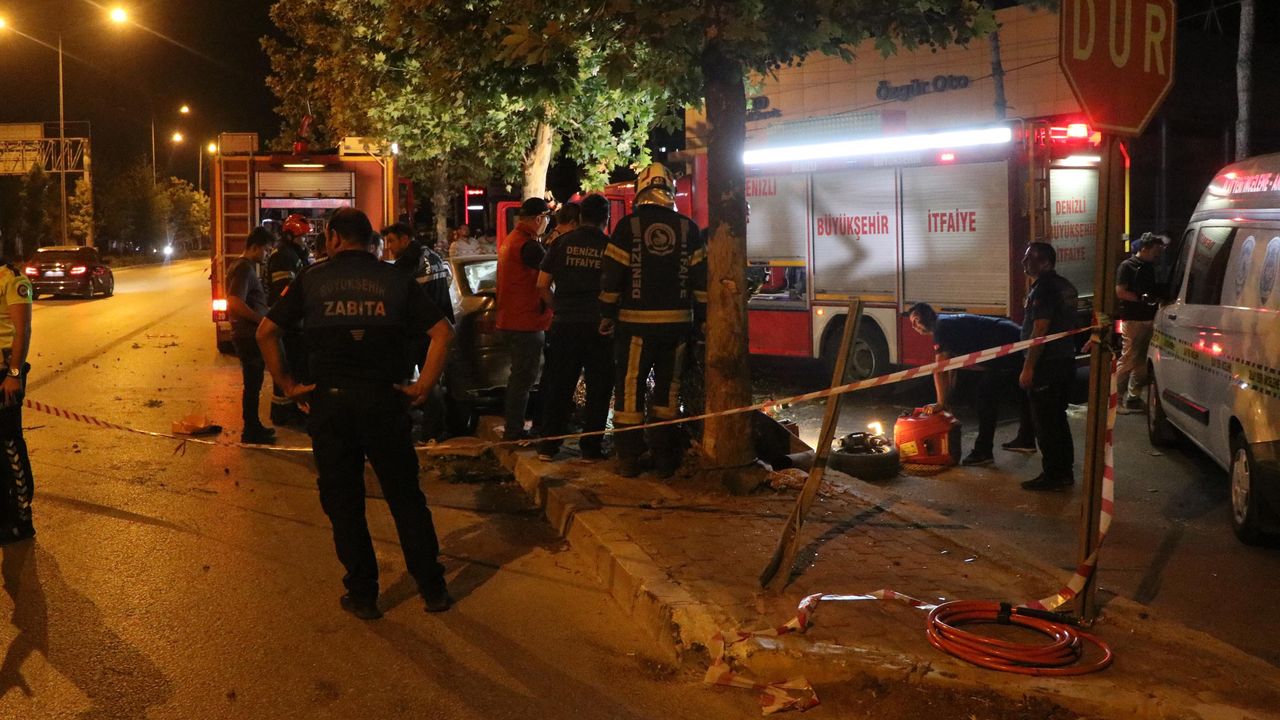 Kaza, dün saat 22.00 sıralarında Merkezefendi ilçesi Denizli-Aydın kara yolu Gümüşler Kavşağı'nda meydana geldi. Menderes Bulvarı'nda Sabri Tığlı'nın (26) yönetimindeki 20 R 9599 plakalı otomobil, yoldan çıkarak ağaca çarptı. Çevredekilerin ihbarı üzerine kaza yerine polis ve sağlık ekipleri sevk edildi. Ekiplerin yaptığı kontrolde otomobilde sıkışan Ezgi Elçin Ünal ve İbrahim Baran Tuncer'in yaşamını yitirdiği belirlendi. Ağır yaralanan sürücü Sabri Tığlı ise ambulansla hastaneye kaldırılarak tedaviye alındı. Polis ekiplerinin yaptığı inceleme sonrası Ünal ile Tuncer'in cenazeleri otopsi için Adli Tıp Kurumu Denizli Bölge Başkanlığı morguna kaldırıldı.