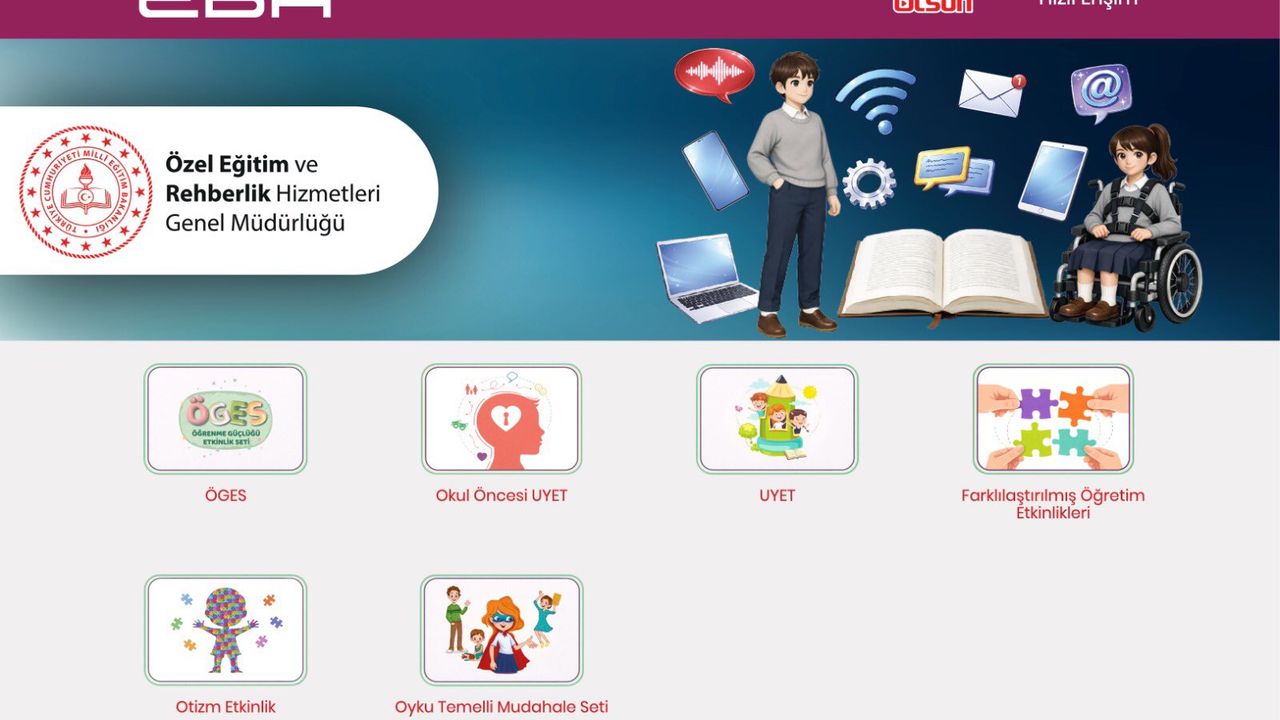 Milli Eğitim Bakanlığı'ndan yapılan yazılı açıklamaya göre, Özel Eğitim ve Rehberlik Hizmetleri Genel Müdürlüğü tarafından hayata geçirilen platformda ders kitapları, yardımcı kaynaklar, akademik destek çalışma sayfaları, yaşam becerilerine yönelik etkinlikler, özel eğitim rehberlik çalışmaları, aile eğitimi içerikleri ile ölçme ve değerlendirme araçları yer alıyor. Dijital materyaller, öğrencilerin bireysel gelişim özellikleri, eğitim gereksinimleri ve farklı öğrenme hızları dikkate alınarak yapılandırıldı.