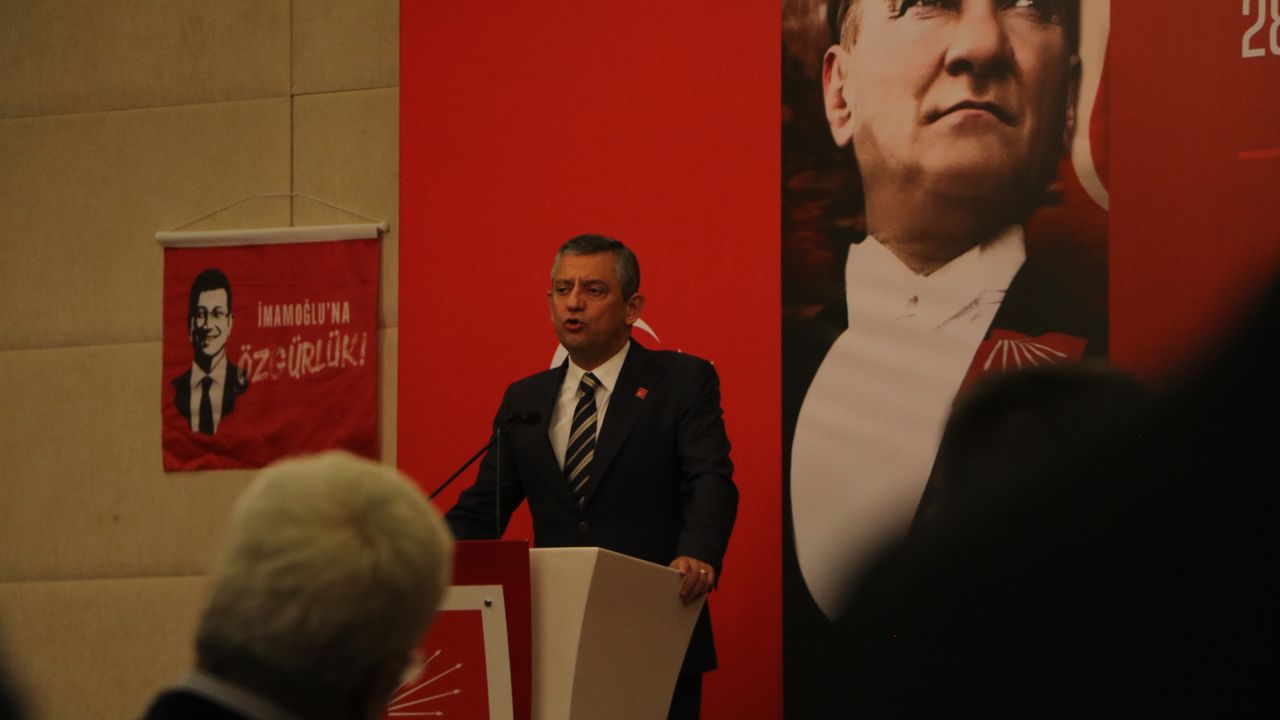 Özel, konuşmasında, 13 belediyeyi kayyımların yönettiğini ifade ederek, “Bugün Esenyurt, Şişli, Ovacık belediyelerimizde kayyım vardır. DEM Parti’nin Van, Mardin, Hakkari, Batman, Siirt, Tunceli, Halfeti, Bahçesaray, Akdeniz, Kağızman belediyelerinde kayyım vardır. Toplamda 13 belediyede milyonlarca seçmenin seçtikleri yerine Tayyip Erdoğan’ın atadıkları belediyeleri yönetmektedir. Cumhuriyet Halk Partisi’nin belediye başkanları, 3'ü Büyükşehir Belediye Başkanı olmak üzere; Adana, Antalya, İstanbul Büyükşehir Belediye başkanları hapistedir. İçerideki belediye başkanlarımızdan Mehmet Murat Çalık bir hastane raporuna rağmen, o rapora itiraz edip ‘Bu hastaneden alacaksın’ deyip baskılanan hastanenin vermediği rapora, öncekinin dört başı mamur ‘Tahliye edilmelidir’ raporuna rağmen içeride tutulmaktadır. Muhittin Böcek günde 14 ilaç içerek bir hapishane hücresinde, haftada bir hayati tehlike geçirerek, bütün izahatlarımıza, bütün doğru yollardan anlatmaya çalışmamıza rağmen; hasta arkadaşlarımız ve sadece Cumhuriyet Halk Partililer değil, bütün hasta tutuklular ve hükümlüler adeta birilerinin gönlü olana kadar ama onların gönlü olana kadar belki de hayatlarını kaybetme riskiyle cezaevlerinde tutulmaktadır. Bir yandan da Cumhuriyet Halk Partili belediyelere ‘Ya hapse atıl, ya da akıllı ol AK Parti‘ye katıl’ diye olabilecek en ahlaksız teklifler yapılmakta, en ahlaksız şantajlar yapılmakta. Bundan korkup kaçanlar AK Parti‘ye katılmakta. Ama bu teklifin yapılmasına karşı karşısındakinin yüzüne acı bir tebessümle bakanlar, sonra da eve gidip eşine ‘Sıra bize geliyor. Hakkınızı helal edin, çocuklar size emanet. Biz valizimizi yapalım, kapının arkasına koyalım. Abdestinden şüphesi olmayanın namazından şüphesi olmaz. Ama benim de bu şantaja pabuç bırakacak birisi olmadığımı görecekler’ diyenler cezaevlerine gidip yatmaktadırlar. Bu sözleri tutuklanmasından 3 gün önce ve 3 gün sonra, önce telefonda ve sonra cezaevindeki görüşme odasında duymuş bir Genel Başkan olarak söylüyorum. Bunun için bu zorlu süreçte kendisini, ailesini feda edip, partisine olan gönül bağını ve kendisine olan öz güvenini gösteren bütün arkadaşlarımın şimdi her biri 12 metrekarelik hücrelerden izliyorlar. Teker teker alınlarından öpüyorum” dedi.