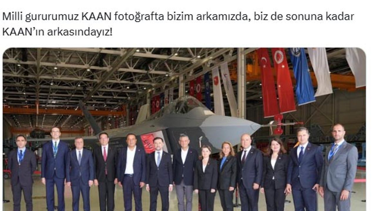 ANKARA, (DHA)- CHP Genel Başkanı Özgür Özel, milli muharip uçak KAAN'ın önünde çektirdikleri fotoğrafı paylaşarak, "Sonuna kadar KAAN'ın arkasındayız" dedi.