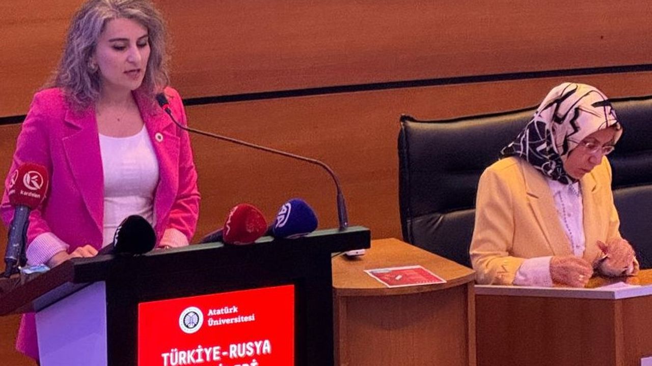 Atatürk Üniversitesi Kültür Merkezi'nde düzenlenen, ‘Türkiye-Rusya İlişkileri Üzerine Uluslararası Akademik Panel’ saat 09.30'da başladı. Türkiye ve Rusya'dan birçok akademisyenin katıldığı panel, üç oturum halinde gerçekleştirildi. İktisadi ve İdari Bilimler Fakültesi Uluslararası İlişkiler Anabilim Dalı Öğretim Üyesi Doç. Dr. Müge Yüce'nin konuşmacı olarak yer aldığı ilk oturumun başkanlığını Atatürk Üniversitesi Rektör Yardımcısı Prof. Dr. Reyhan Keleş yaptı. ‘Değişen Dünya Düzeninde Türkiye-Rusya İlişkilerinin Yeniden Analizi: Siyasi, Ekonomik ve Stratejik Boyutlar’ başlıklı sunumunu yapmak için kürsüye çıkan Doç. Dr. Yüce, konuşmasına başladıktan kısa süre sonra fenalaştı. Durumu fark eden Rektör Yardımcısı Prof. Dr. Keleş, baygınlık geçiren Yüce'yi tutarak düşmesini engelledi. Kürsünün arkasında bir koltuğa oturtularak ilk müdahalesi yapılan Doç. Dr. Yüce, kısa sürede kendine geldi. Katılımcıların alkışları arasında konuşmasına kaldığı yerden devam eden Yüce, sunumunu başarıyla tamamladı. (DHA)