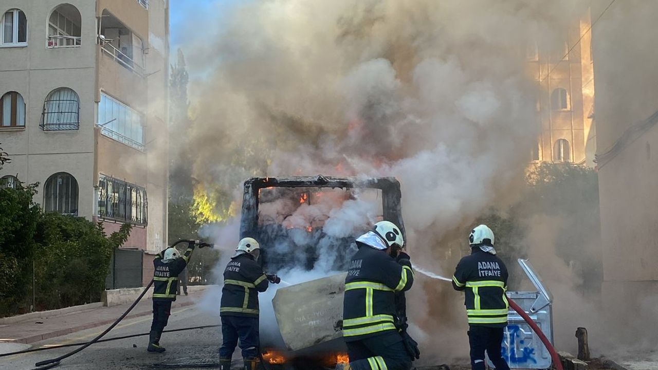 Çukurova ilçesi 100'üncü Yıl Mahallesi'nde sokakta park halindeki özel halk otobüsünde saat 17.00 sıralarında bilinmeyen nedenle yangın çıktı. Alevler kısa sürede tüm otobüsü sardı. Mahallelinin ihbarıyla adrese itfaiye ekipleri sevk edildi. Çevredekiler zaman zaman otobüsteki alevlerin parlaması nedeniyle panik yaşadı. Ekipler yangını kontrol altına aldıktan sonra soğutma çalışması yaptı. Araç, kullanılamaz hale gelirken yangının çıkış nedeninin belirlenmesi için inceleme başlatıldı. (DHA)