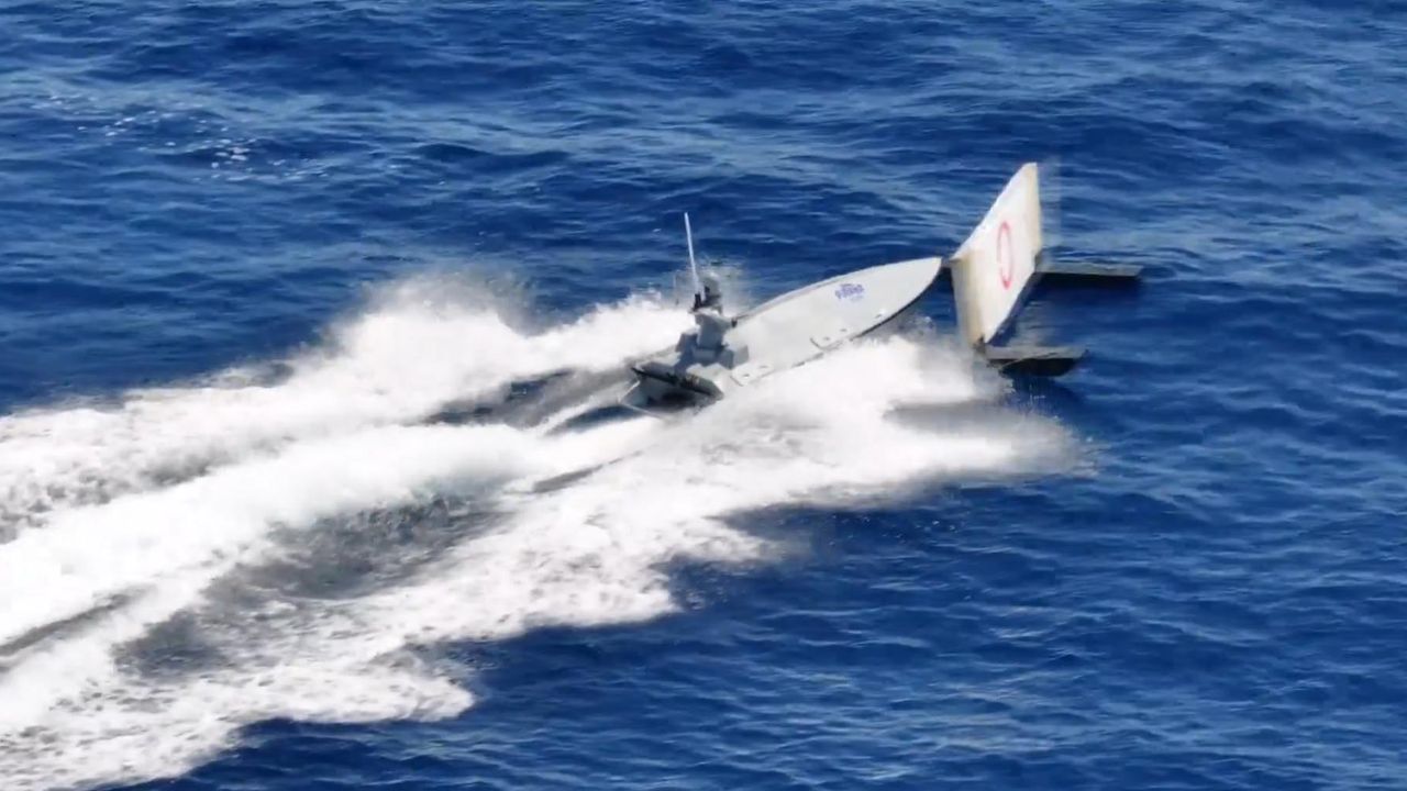 ANKARA, (DHA)- TCG ANADOLU’dan kalkan İnsansız Hava Aracı (İHA) Bayraktar TB-3 ile entegre şekilde kumanda edilen MKE PİRANA Kamikaze İnsansız Deniz Aracı (İDA), hedefi tam isabetle vurdu.