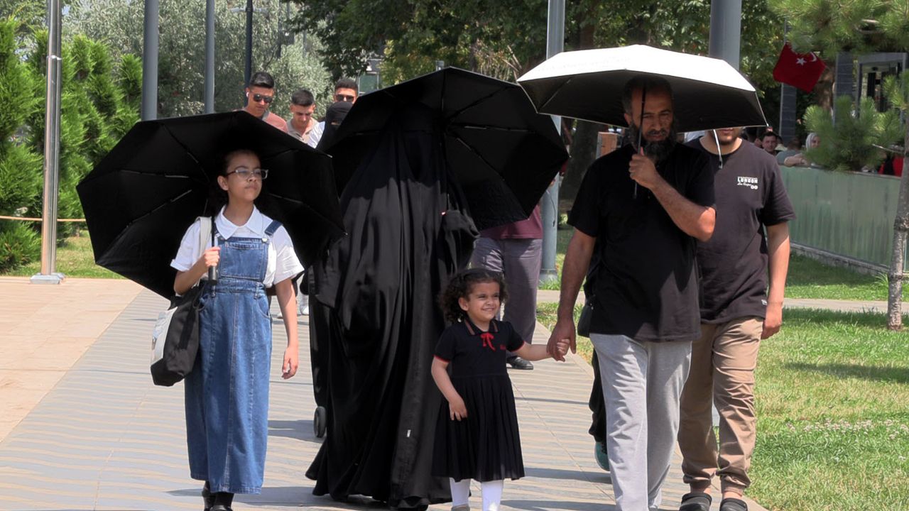 Serinlemek için mesire alanlarını tercih ettiğini belirten Serap Tanış, “Trabzon’da aşırı nem ve sıcaklık var. Evlerde duramıyoruz. O yüzden kendimizi çimenlere atıyoruz, çay içiyoruz” ifadelerini kullandı. (DHA)