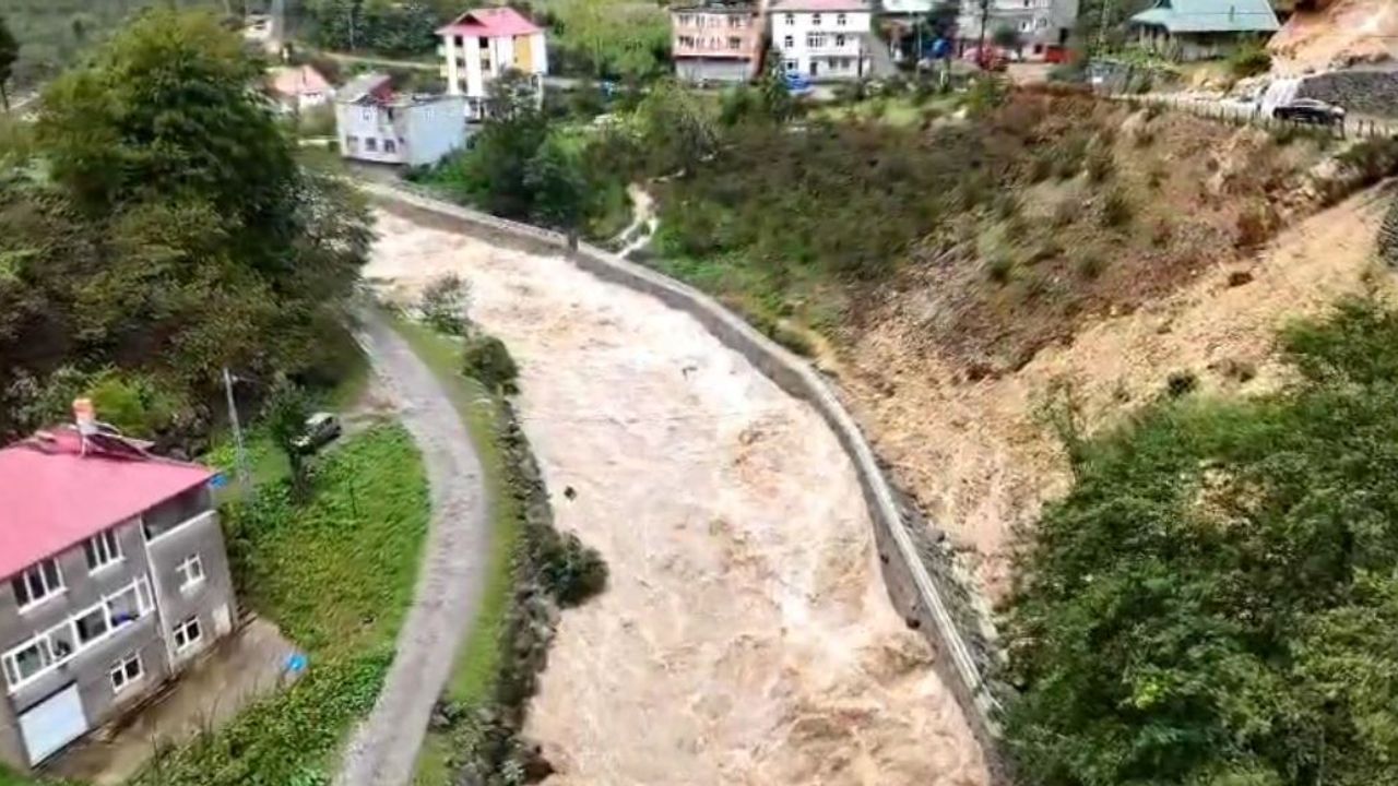 Öte yandan debisi artan derelerden yeni görüntüler de ortaya çıktı. Görüntülerde çamurlu suyla dolan derelerde suların hızla Karadeniz’e doğru ilerlediği anlar yer aldı. (DHA)
