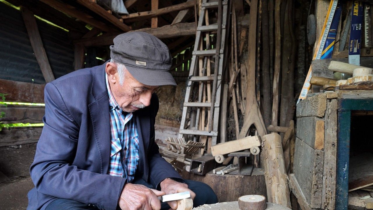 Mutlu YUCA-Oğuzhan EKE/MENGEN (Bolu), (DHA)- BOLU'nun Mengen ilçesinde yaşayan İrfan Sağlam (70), marangoz atölyesine çevirdiği samanlıkta tarım aletlerinin minyatürünü yapıyor.