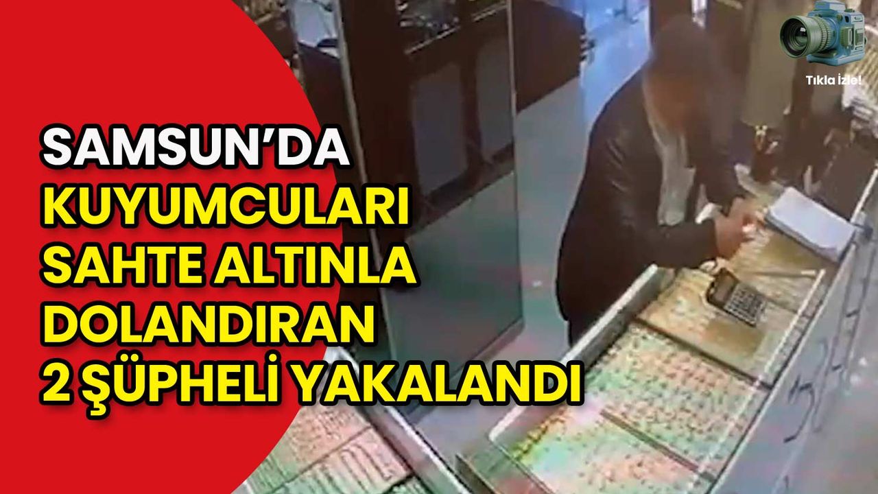 Samsun’un Çarşamba ilçesinde, kuyumculara sahte altın satmaya çalışan iki şüpheli polis ekiplerinin düzenlediği operasyonla suçüstü yakalandı. Şüphelilerin kuyumcularda sahte altın satmaya çalıştıkları anlar güvenlik kameralarına yansıdı.