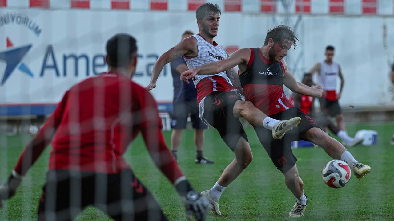 Samsunspor, UEFA Avrupa Ligi Play-Off turu ilk karşılaşması öncesinde hazırlıklarını sıkı bir tempoda sürdürüyor. Teknik Direktör Thomas Reis yönetiminde gerçekleştirilen antrenman, ısınma hareketleriyle başladı. Çalışmalar, 5v2 pas oyunu, dar alanda yönsüz oyun, rondo ve iki takımlı hedefli oyunla devam etti. İdman yoğun bir tempoda tamamlandı.