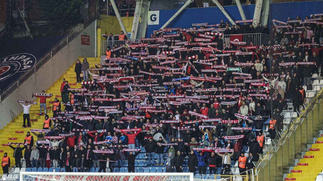 Süper Lig’in İstanbul’da oynanan Kasımpaşa–Samsunspor karşılaşmasında kırmızı-beyazlı taraftarlar, takımlarını deplasmanda da yalnız bırakmadı. Kasımpaşa karşısında kendilerine ayrılan tribünü tamamen dolduran Samsunspor taraftarı, ortaya koyduğu atmosferle adeta iç saha havası estirdi.