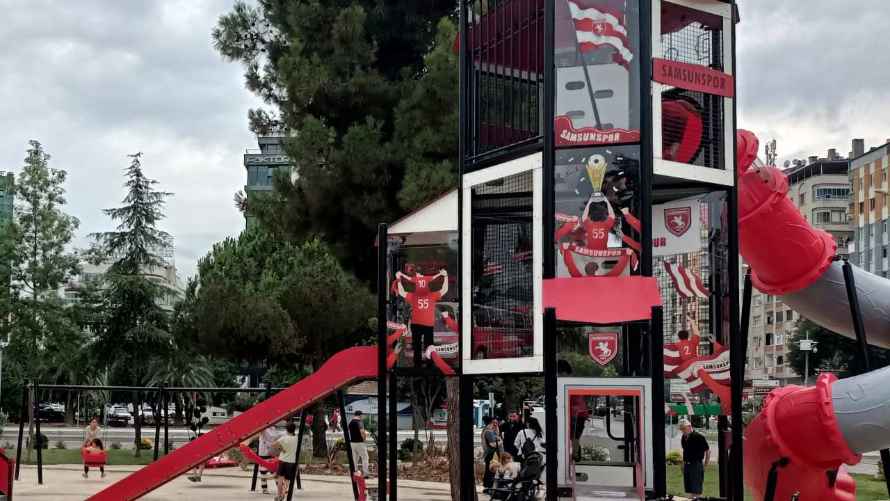 Kent merkezinin önemli noktalarından biri olan Gençlik Parkı, bu tematik çalışmayla daha da canlı hale geldi. Samsunspor’un renkleriyle bezenen oyun alanı, şehrin simgelerinden biri olmaya aday.