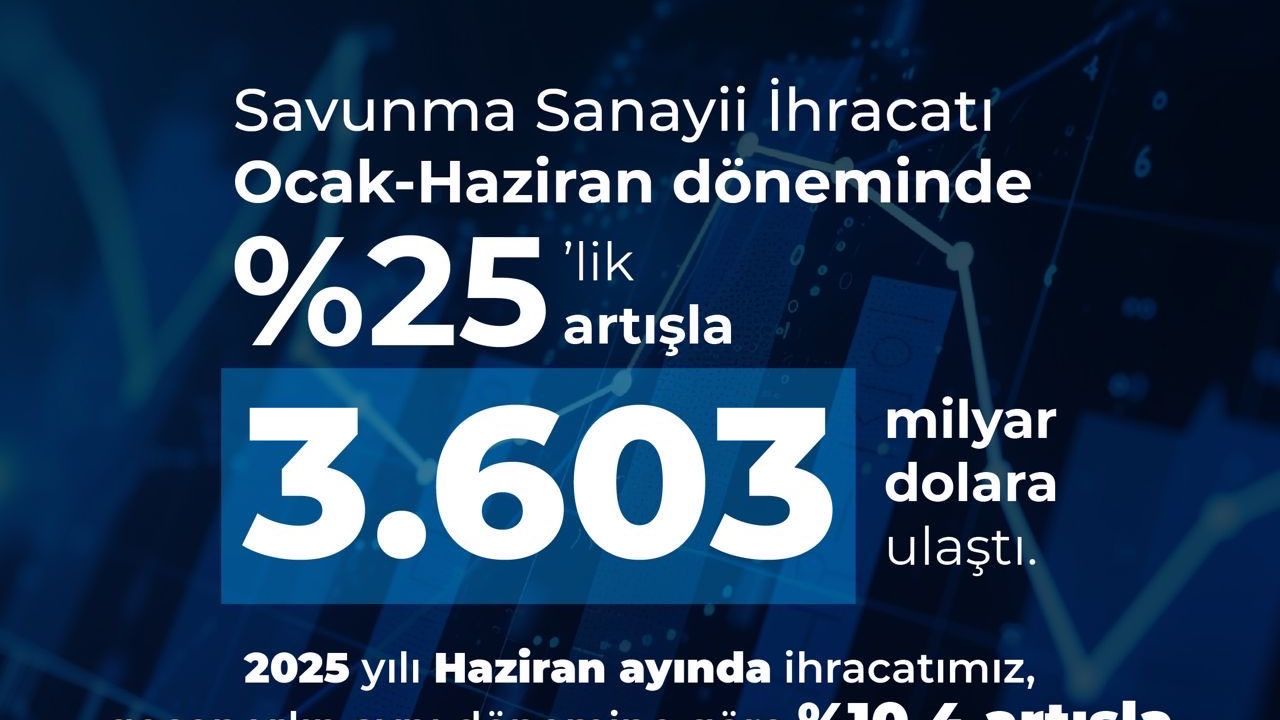 Savunma Sanayii Başkanı Görgün, sosyal medya hesabından yaptığı açıklamada, savunma ve havacılık sanayi ihracatında yeni zirvenin gerçekleştiğini belirterek, "Ocak-haziran döneminde ihracatımız yüzde 25 artışla 3 milyar 603 milyon dolara ulaştı. 2025 yılı haziran ayında ihracatımız, geçen yılın aynı dönemine göre yüzde 10,4 artışla 623 milyon dolar olarak gerçekleşti. Son 12 aylık toplam ihracatımız ise yüzde 23,1 artışla 7 milyar 454 milyon dolar olarak kayda geçti" dedi.