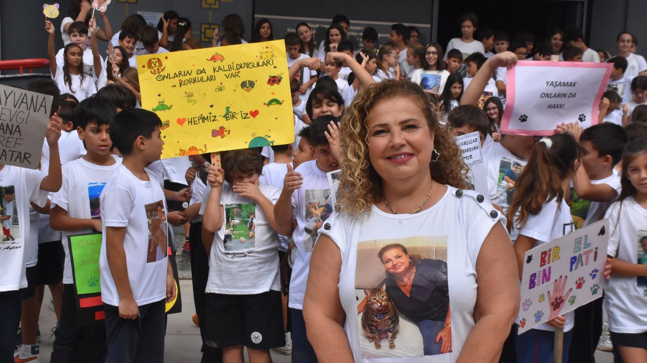 Güzelbahçe ilçesindeki Dr. Güngör Özbek Ortaokulu öğrencileri, 4 Ekim Hayvanları Koruma Günü için bir etkinlik hazırladı. Günler öncesinden evcil hayvanlarıyla çektirdikleri fotoğrafları tişörtlerinin üzerine bastıran öğrenciler, 'Onların da kalbi, duyguları korkuları var. Hepimiz biriz', 'Hayvanlara karşı acımasız olan iyi bir insan olamaz', 'Bütün canlılar yaşama hakkına sahiptir' ve 'Araç içinde beni bırakma' yazılı pankartlar hazırlayarak okulun bahçesinde bir araya geldi. Tüm sınıflardaki öğrencilerin ilgi gösterdiği etkinlikte öğrenciler, "Hayvanları satın almayın, sahiplenin" sloganı attı.