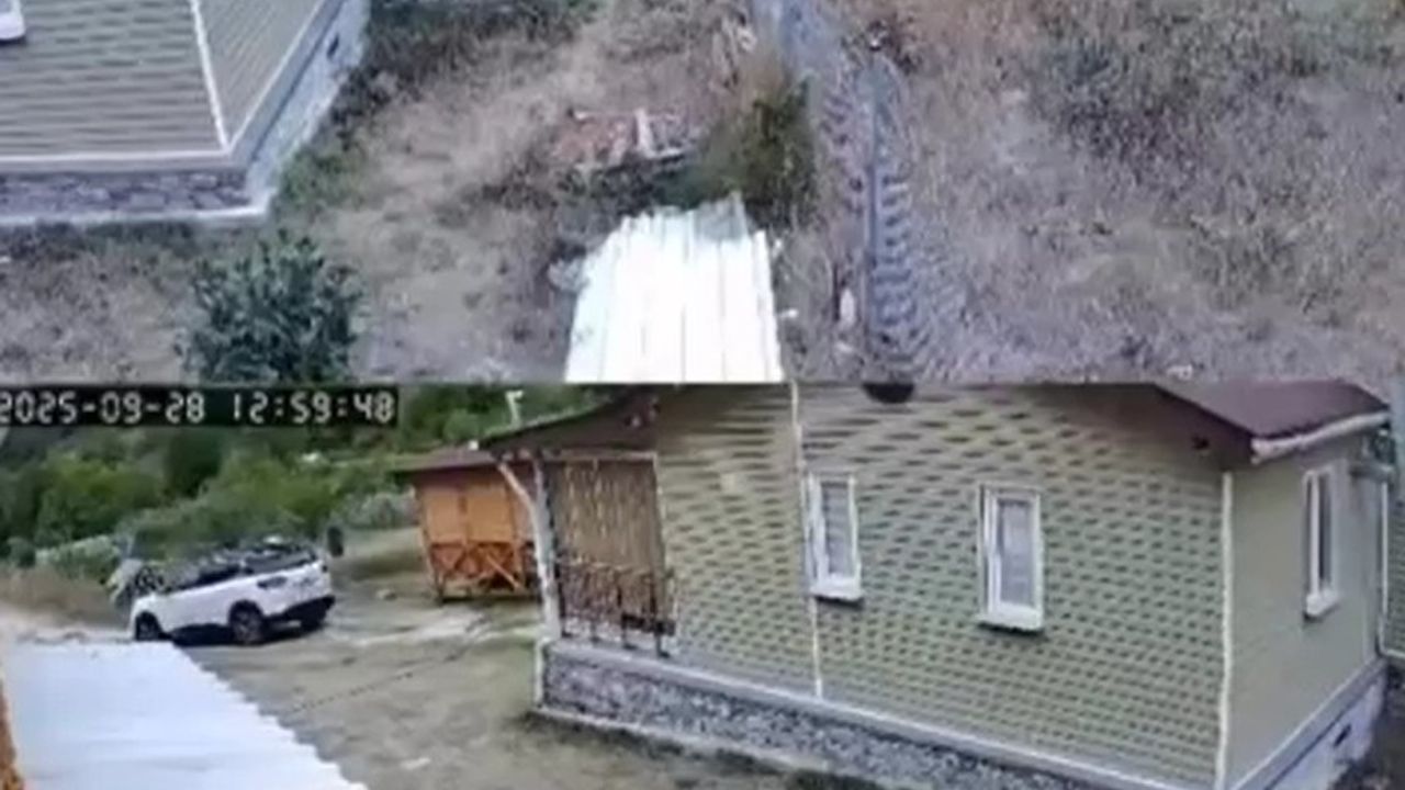Bursa’nın Orhaneli ilçesi Göynükbelen Mahallesi’nde kaydedilen güvenlik kamerası görüntüsünde ise 5.4 büyüklüğündeki depremle birlikte, prefabrik evlerin salladığı görüldü. (DHA)