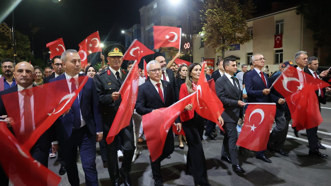 Türkiye Cumhuriyeti’nin kurucusu Ulu Önder Mustafa Kemal Atatürk ve silah arkadaşlarının kazandığı Kurtuluş Savaşı dolayısıyla 30 Ağustos Zafer Bayramı kapsamında Sivas'ta Zafer Yürüyüşü yapıldı. Tarihi tren garı önünden başlayan yürüyüşe Sivas Valisi Yılmaz Şimşek, Belediye Başkanı Adem Uzun, Garnizon ve 5'inci Piyade Eğitim Tugay Komutanı Tuğgeneral Zeynel Abidin Alptekin, İl Jandarma Komutanı Albay Adem Taşkın, askeri personel, sporcular ve vatandaşlar katıldı. Katılımcılar İnönü Bulvarını takip ederek Türk bayraklarıyla tarihi Cumhuriyet Meydanı'na kadar yürüdü. Yürüyüşe katılan askerler, Türk bayrağı açarak 'Vatan sana canım feda', 'Ne mutlu Türküm diyene' ve 'Şehitler ölmez, vatan bölünmez' sloganlarını attı. Atlı sporcuların da katıldığı yürüyüş sonrası İstiklal Marşı okundu. Vatandaşlar yürüyüş sırasında askerlere yoğun ilgi gösterdi. (DHA)