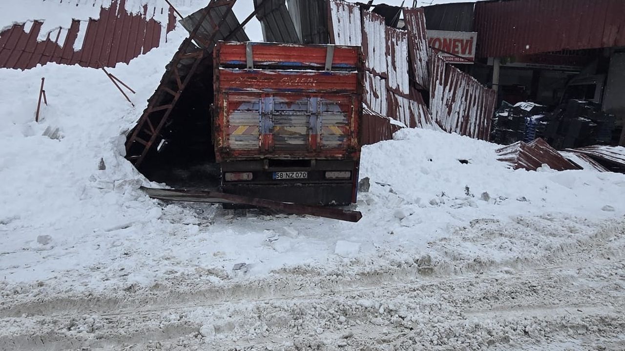 Yoğun kar yağışının etkili olduğu kentte, saat 15.00 sıralarında Gültepe Mahallesi Toptancılar Sitesi içerisindeki sebze halinde 2 dükkanın çatısında biriken kar nedeniyle çökme meydana geldi. İhbar üzerine adrese polis ve itfaiye ekipleri sevk edildi. Çevrede güvenlik önlemi alınırken, Sivas Belediyesi itfaiye ekipleri çöken çatıyı kaldırmak için çalışma başlattı. Olayda yaralanan olmazken, çatının altındaki bir otomobil ve kamyon ise zarar görmedi. Çatının çökme anı cep telefonuyla kaydedildi. (DHA)
