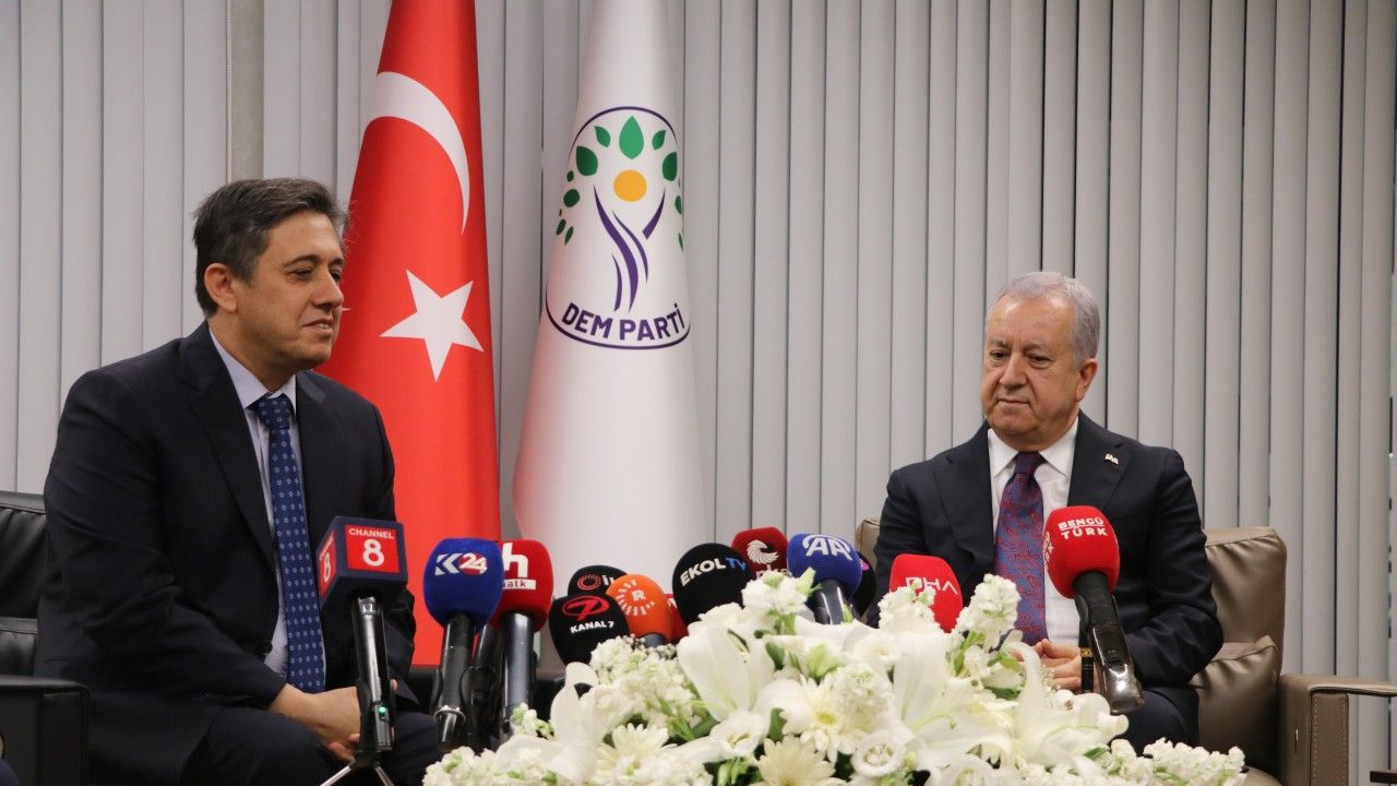 DEM Parti Genel Merkezi'nde Eş Genel Başkan Yardımcısı Mehmet Rüştü Tiryaki başkanlığında, Parti Meclisi üyeleri Zeyno Bayramoğlu ve İhsan Seylan'dan oluşan heyet, partilerin ziyaret heyetlerini kabul etti. DEM Parti, ilk olarak MHP heyeti ile bir araya geldi. MHP Genel Başkan Yardımcısı Sadir Durmaz başkanlığındaki heyette, Merkez Yönetim Kurulu üyeleri Esma Özdaşlı ve Şahin Kartal yer aldı. Heyetler birbirlerinin bayramını tebrik etti.