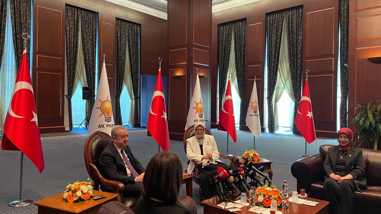 AK Parti Genel Merkezi'ndeki bayramlaşma programında; Genel Başkan Yardımcısı Belgin Uygur başkanlığında Sivil Toplum ve Halkla İlişkiler Başkan Yardımcısı Selahattin Yağcı, Kadın Kolları Genel Başkan Yardımcısı Rukiye Toy ile AK Parti Gençlik Kolları Genel Başkan Yardımcısı Abdullah Uçan'dan oluşan heyet, MHP Genel Başkan Yardımcısı Sadir Durmaz başkanlığındaki MHP heyetini kabul etti.