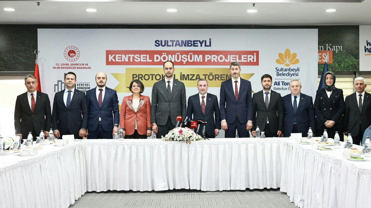 Sultanbeyli’de kentsel dönüşüm çalışmaları hız kazanarak devam ediyor. Deprem tehdidine karşı güvenli ve dirençli yapılar inşa etmek vizyonuyla sürdürülen çalışmalar kapsamında Çevre, Şehircilik ve İklim Değişikliği Bakanlığı Kentsel Dönüşüm Başkanlığı ile Sultanbeyli Belediyesi arasında önemli bir adım daha atıldı. Sultanbeyli Belediye Başkanlığı’nda düzenlenen tören kapsamında; Sultanbeyli Belediye Başkanı Ali Tombaş ile Kentsel Dönüşüm Başkanlığı Başkanı Hakkı Alp arasında ‘Sultanbeyli Kentsel Dönüşüm Projeleri Protokolü’ imzalandı. Ayrıca törene; Kentsel Dönüşüm Başkan Yardımcısı Hicran Çakmak, Marmara Kentsel Dönüşüm Genel Müdürü Sezayi Köse, Taşınmaz ve Kaynakları Geliştirme Genel Müdürü Oğuzhan Yaylacı ve Belediye Başkan Yardımcıları katıldı.