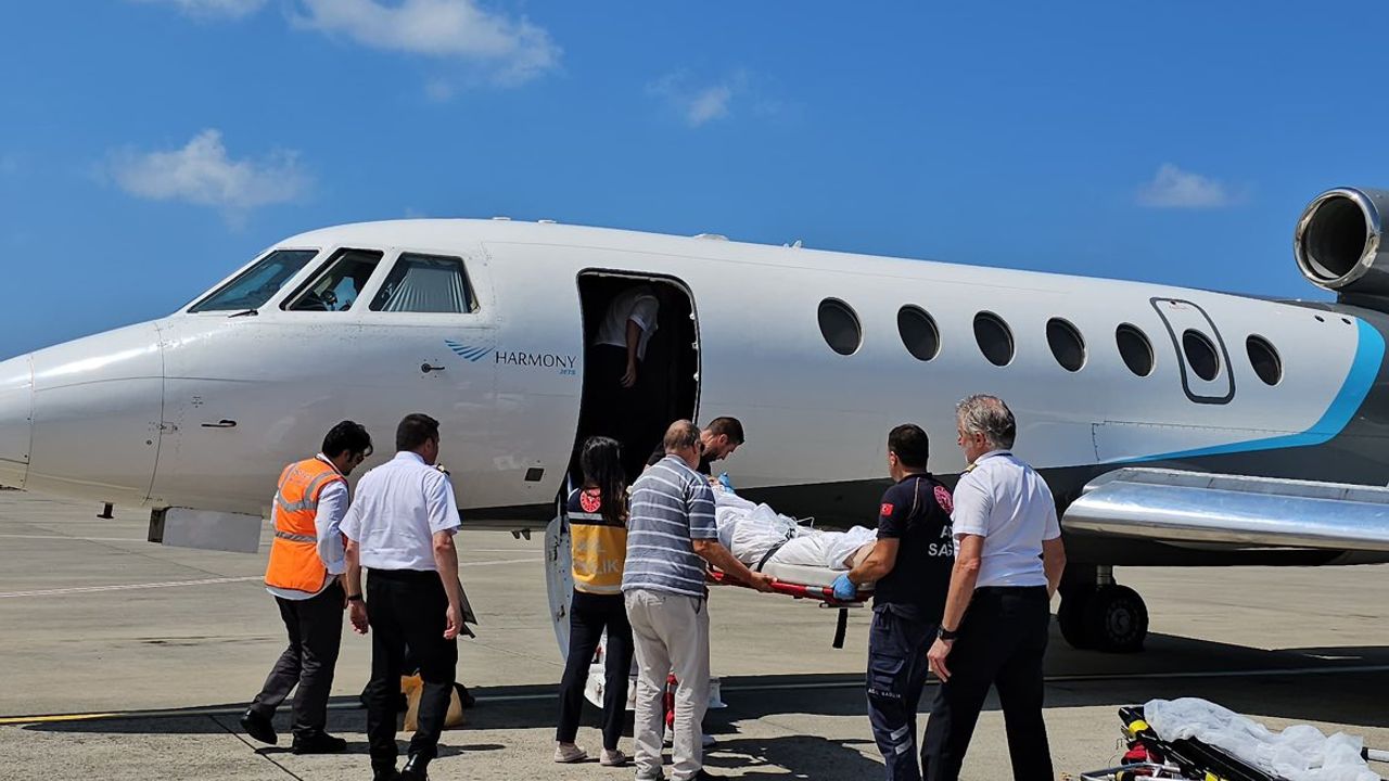 Bakan Memişoğlu'nun sosyal medya hesabından yaptığı açıklamaya göre; Tayland’dan İngiltere’ye nakledilen yabancı uyruklu hastanın uçuş sırasında oksijen tüpleri bitince, hava ambulansı Trabzon Havalimanı’na acil iniş yaptı. Trabzon 112 ekipleri tarafından, hava ambulansında ilk müdahalesi yapılan hasta, beyin kanaması, pnömotoraks ve böbrek yetmezliği tanılarıyla Kanuni Eğitim ve Araştırma Hastanesi’ne nakledildi. Gece boyunca acil serviste izlenen hasta, oksijen ikmalinin tamamlanmasının ardından bugün hava ambulansına tekrar alınarak İngiltere’ye sevk edildi. Bakan Memişoğlu, "Türkiye, güçlü sağlık altyapısı ve hızlı müdahale kapasitesiyle sadece kendi vatandaşlarına değil, uluslararası hastalara da güven vermeye devam ediyor. Bu süreçte görev alan tüm sağlık personelimize teşekkür ediyor, hastaya acil şifalar diliyorum" ifadelerini kullandı. (DHA)