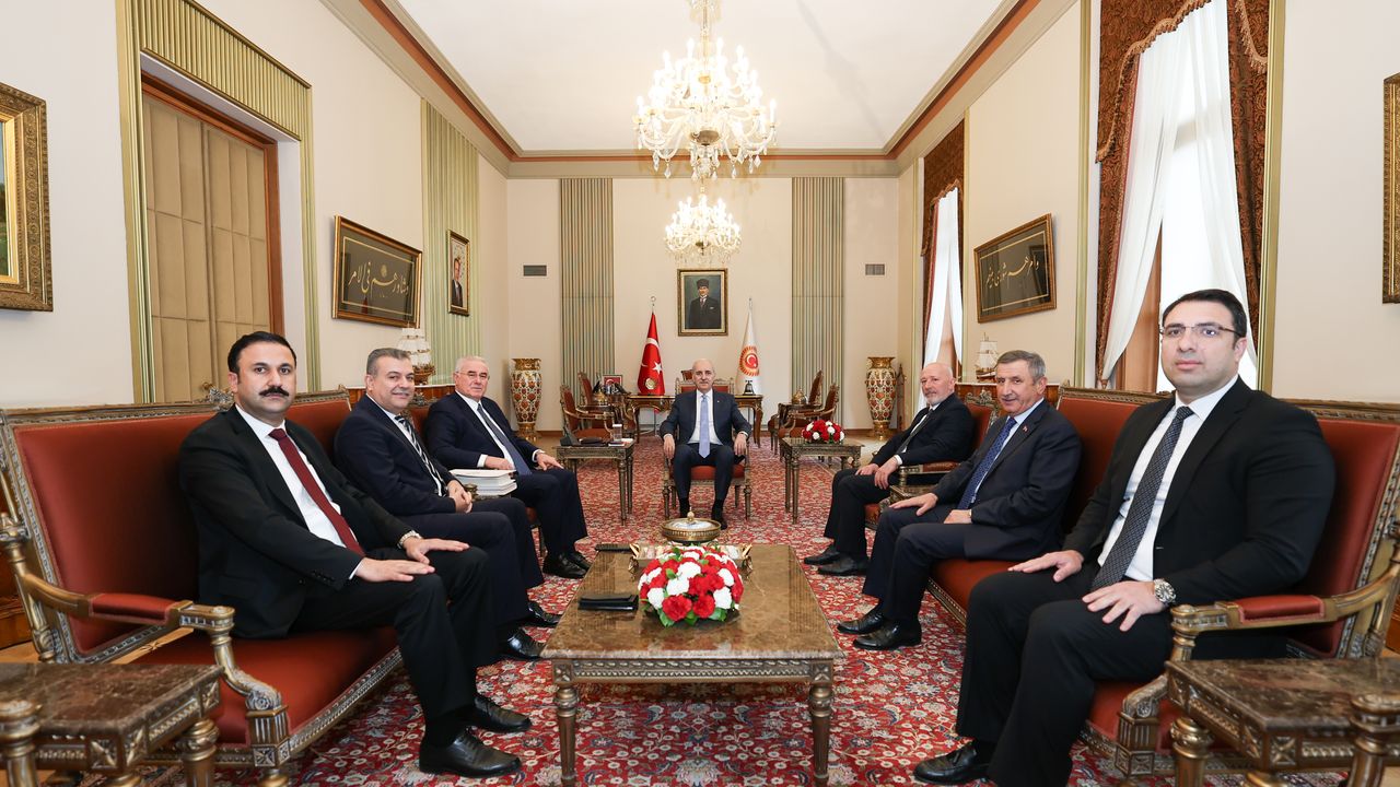 TBMM'nin sosyal medya hesabından yapılan açıklamada, 'Türkiye Büyük Millet Meclisi Başkanımız Numan Kurtulmuş, Kamu Başdenetçisi Mehmet Akarca ile beraberindeki Kamu Denetçileri Özcan Yıldız, Abdullah Cengiz Makas, Şerif Yılmaz, Ertunç Erkan Balta ve Genel Sekreter Mehmet Doğan'ı kabul etti' denildi. (DHA)
