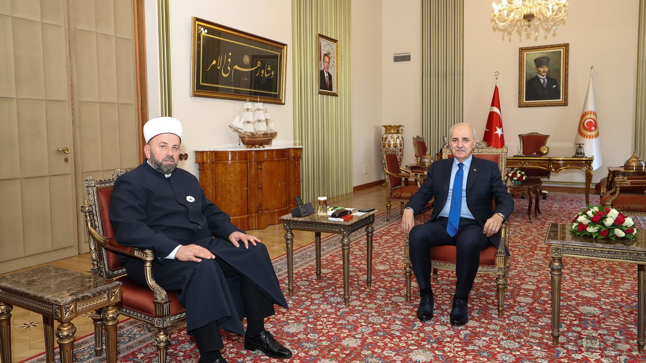 Aliekber METE/ ANKARA, (DHA)- TÜRKİYE Büyük Millet Meclisi (TBMM) Başkanı Numan Kurtulmuş, Karadağ İslam Birliği Başkanı Rifat Fejzic'i kabul etti.