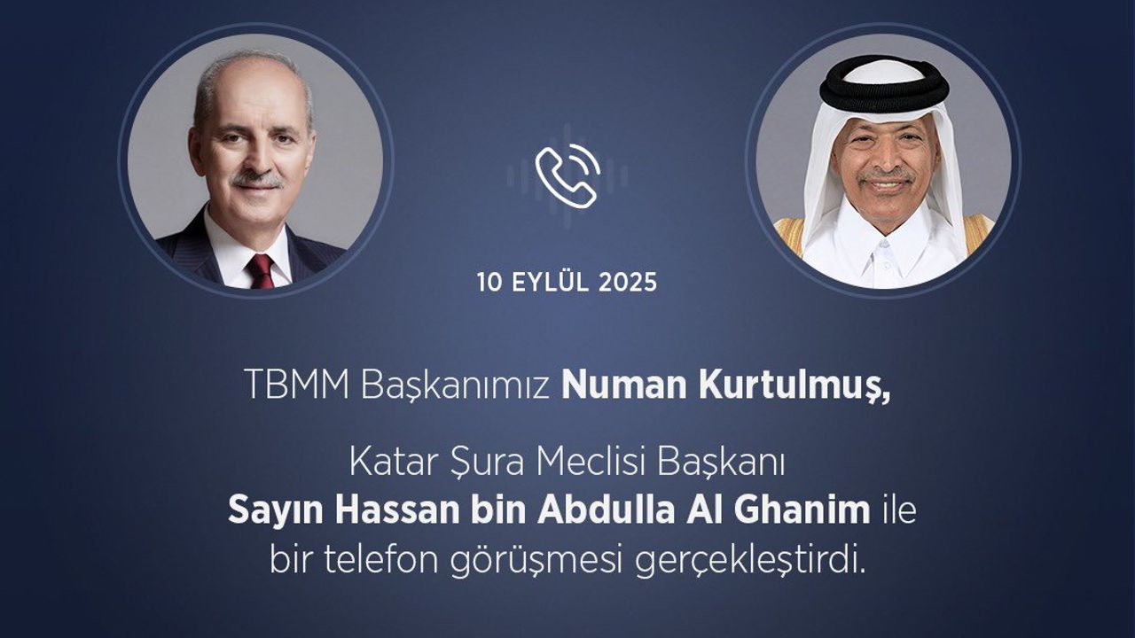 ANKARA, (DHA)- TBMM Başkanı Numan Kurtulmuş, Katar Şura Meclisi Başkanı Hassan bin Abdulla Al Ghanim ile telefonda görüştü.