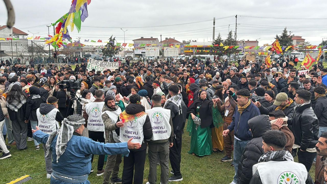 Trakya'daki nevruz kutlaması DEM Parti tarafından Tekirdağ'ın Ergene ilçesi Sağlık Mahallesi'nde düzenlendi. Kutlamalara DEM Parti İstanbul Milletvekili Özgül Saki, Iğdır Milletvekili Yılmaz Hun katıldı. Tekirdağ, Edirne ve Kırklareli'den de katılım oldu. Konuşmaların ardından nevruz ateşinin yakılmasıyla birlikte davul zurna eşliğinde halaylar çekilerek kutlama yapıldı. Polis, alanda geniş güvenlik önlemi aldı. (DHA)
