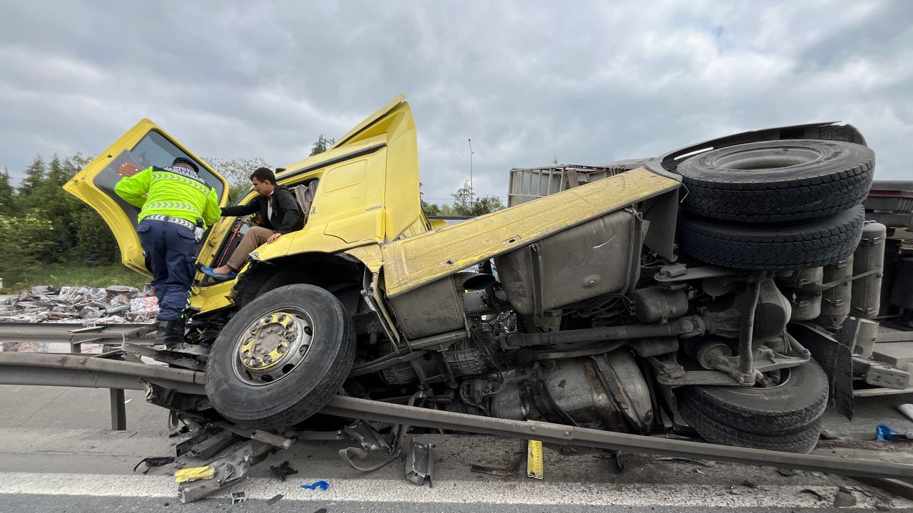 Kaza, saat 10.30 sıralarında TEM Otoyolu Kartepe ilçesi Emekevler Mahallesi mevkisinde meydana geldi. Mustafa Ö. idaresindeki 42 ARN 516 kupa plakalı hurda yüklü TIR, sürücüsünün direksiyon hakimiyetini kaybetmesi ile refüje çarparak 100 metre sürüklenip, bariyerlerin üzerine devrildi. Dorsedeki hurdalar otoyolun İstanbul istikametine saçıldı. İhbarla olay yerine itfaiye, sağlık ve jandarma ekibi sevk edildi. 3 şeritli otoyolda oluşan yoğunluk nedeniyle trafik kontrollü sağlanırken, TIR ve hurdaların kaldırılması için çalışma başlatıldı. Yaralanan TIR şoförü Mustafa Ö.’ye ambulansta müdahale edildi.