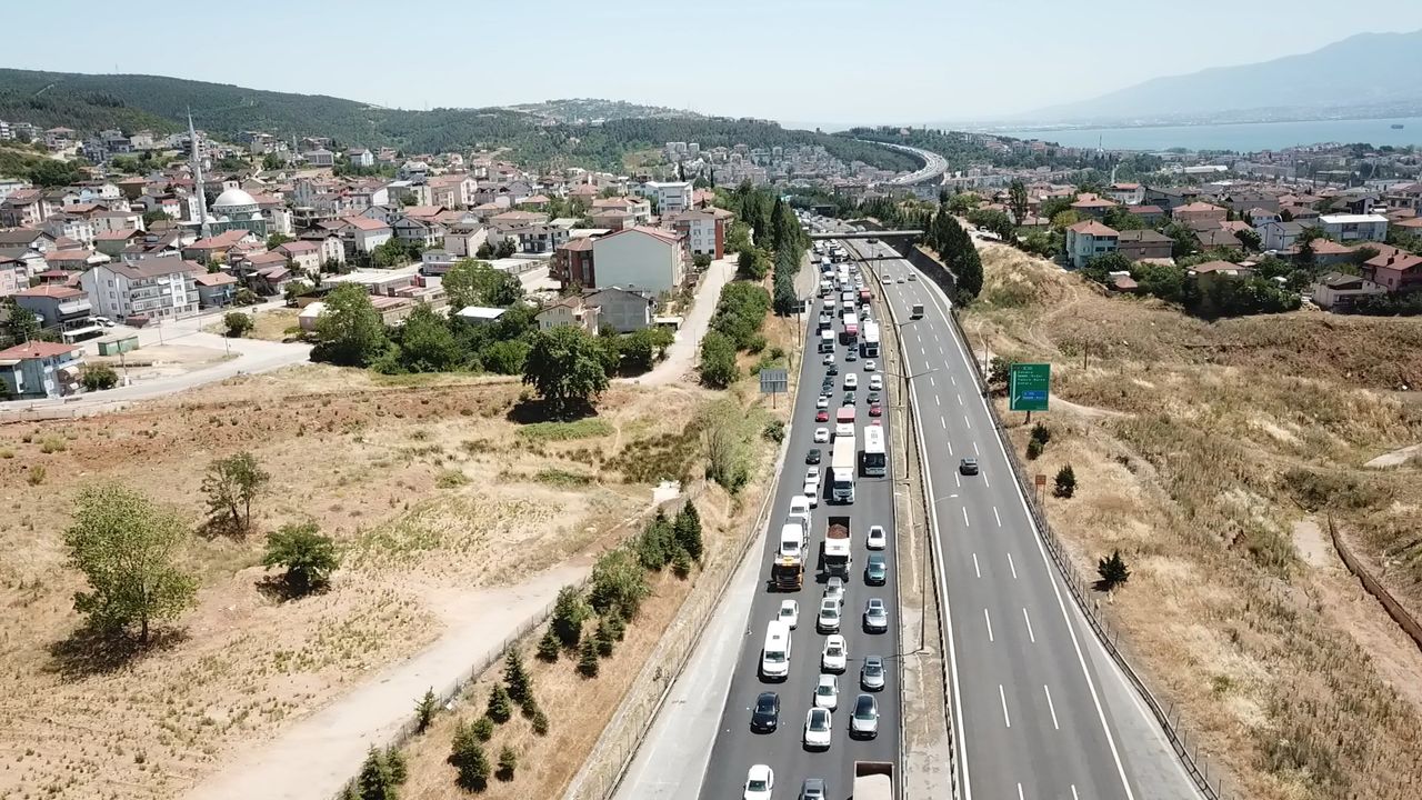 Nazım Özgün ERBULAN-Nabi YAZICI/KÖRFEZ (Kocaeli), (DHA)- KOCAELİ’de TEM Otoyolu’nda aynı yöne giden TIR ile yolcu otobüsünün çarpıştığı kazada, 1’i ağır 3 kişi yaralandı. Kaza nedeniyle yolun İstanbul istikametinde oluşan trafik yoğunluğu havadan görüntülendi.