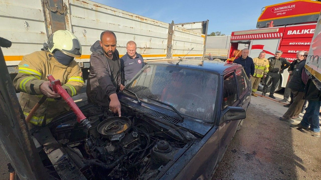 Yangın saat 17.00 sıralarında çıktı. TIR garajında park halinde bulunan Recep A.’ya ait 26 NF 496 plakalı otomobilin motor bölümünden alevlerin yükseldiğini görenler, 112 Acil Çağrı Merkezine haber verdi. İhbar üzerine olay yerine itfaiye ve polis ekipleri sevk edildi. Polis ekipleri çevrede güvenlik önlemi alırken, kısa süreli paniğe neden olan yangın, itfaiye ekiplerinin müdahalesiyle yarım saatte söndürüldü. Araç kullanılamaz hale gelirken, yangının çıkış nedeniyle ilgili inceleme başlatıldı. (DHA)