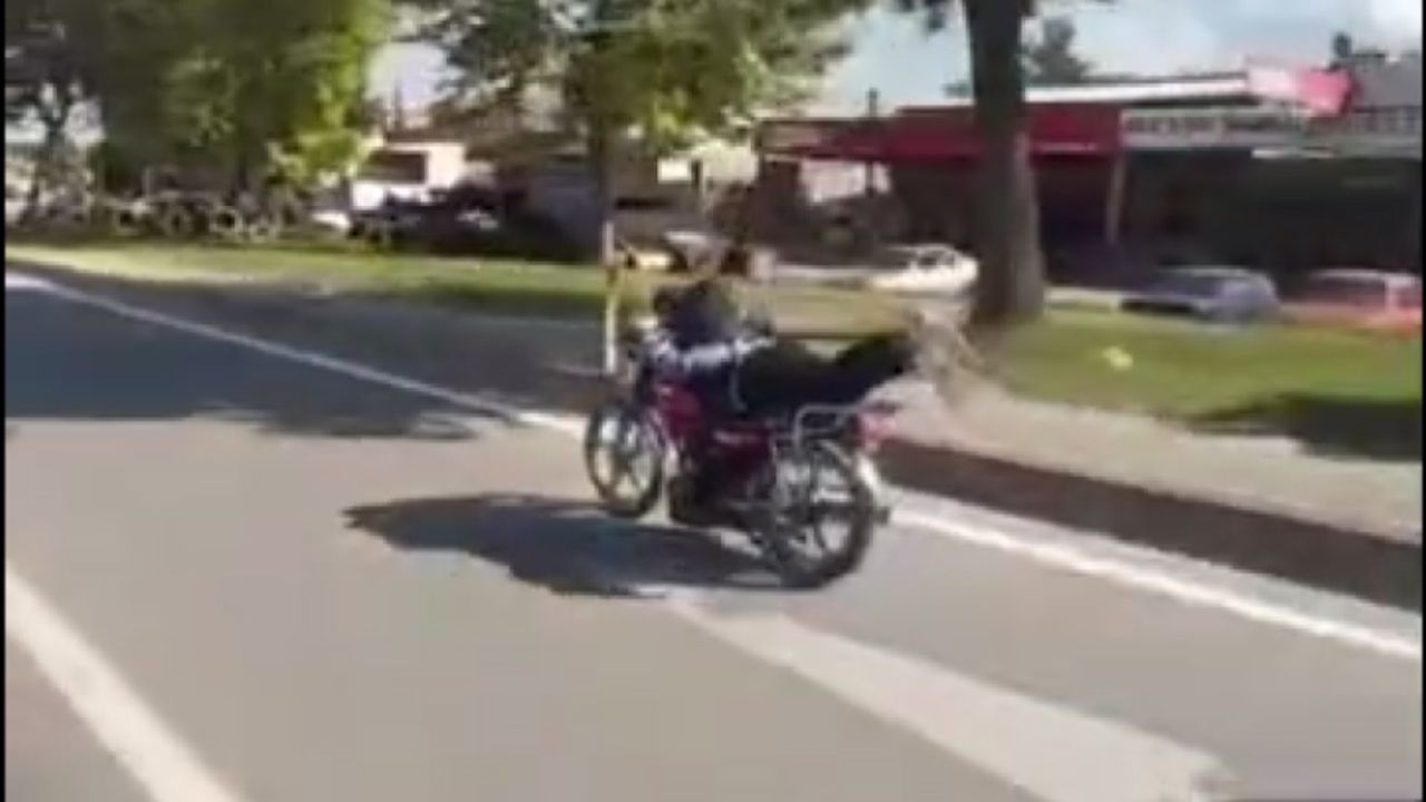 İbrahim UĞUR/ERBAA (Tokat), (DHA)- TOKAT’ın Erbaa ilçesinde bir sürücünün motosikletini üzerine yatarak kullandığı anlar, kameraya yansıdı.