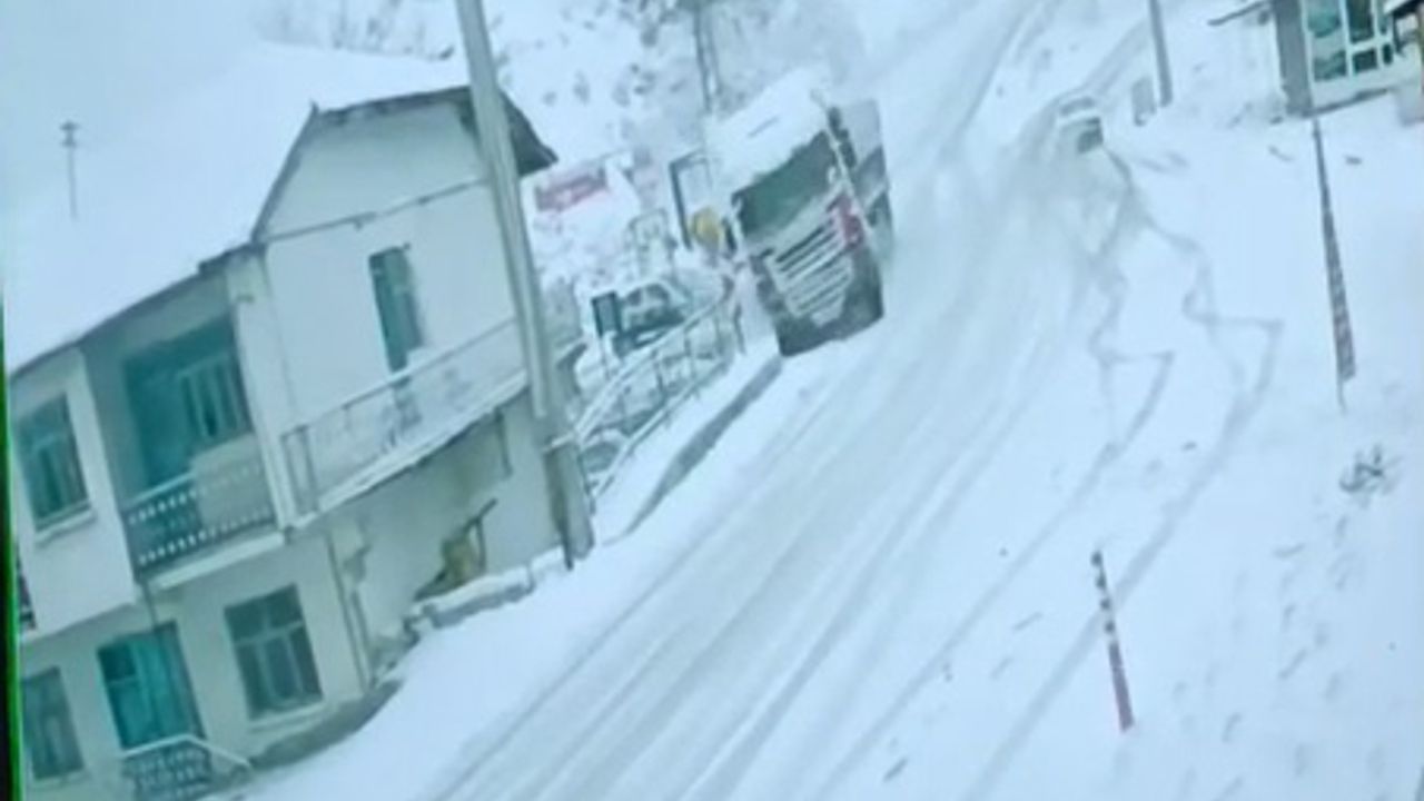 Fatih YILMAZ/ TOKAT, (DHA)- TOKAT'ın Reşadiye ilçesinde, sürücüsünün kontrolünden çıkan TIR'ın bir eve çarpma anı güvenlik kamerasına yansıdı.