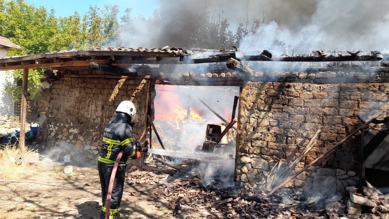 İbrahim UĞUR/ERBAA (Tokat), (DHA)- TOKAT'ın Erbaa ilçesinde bir evin eklentisinde çıkan yangında 2 traktör, tarım aletleri, 1,5 ton buğday, 1 ton gübre ve 250 litre mazot yandı.