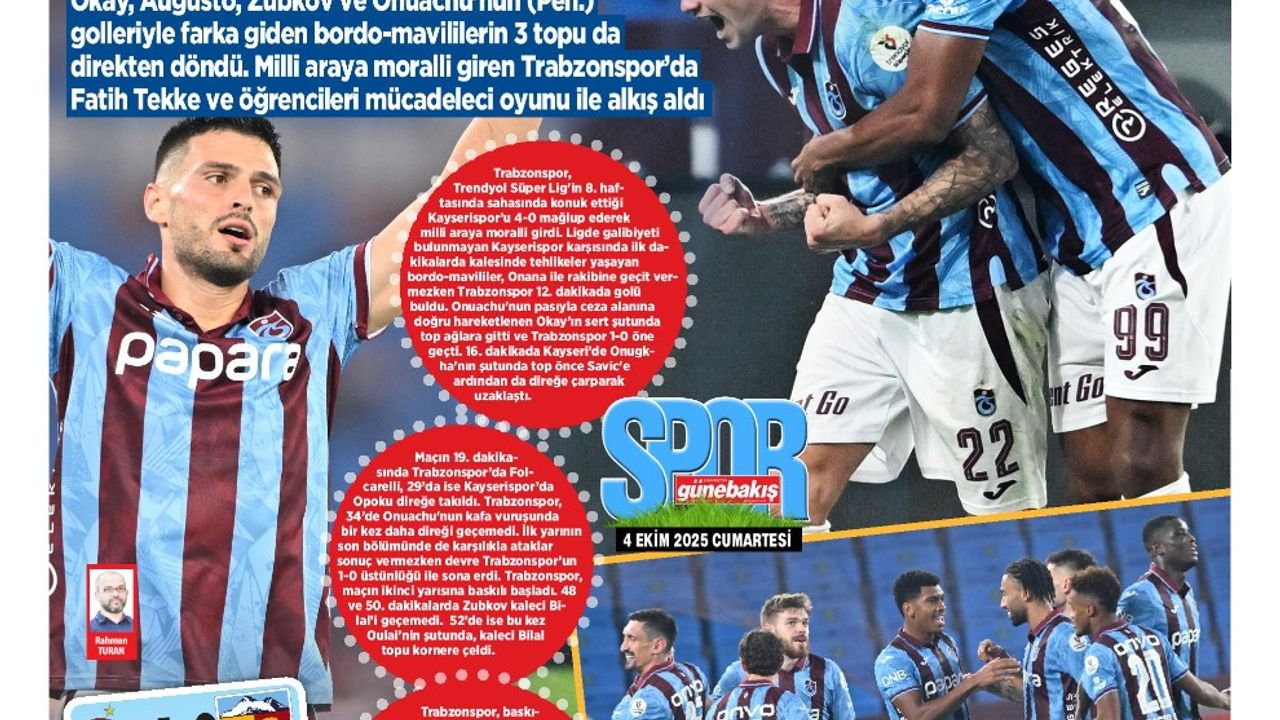 Öte yandan Trabzon’da yayın yapan yerel gazeteler de bordo-mavili takımın sahasında Zecorner Kayserispor’ karşısında alınan galibiyeti farklı başlıklarla manşetlerine taşıdı.