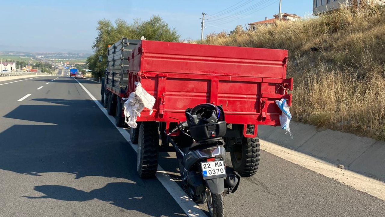 Kaza, sabah saatlerinde Keşan-İpsala kara yolu Dörtyol Kavşağı yakınlarında meydana geldi. Keşan’dan, İpsala yönüne giden N.M. yönetimindeki 22 MA 0370 plakalı motosiklet, M.D. yönetimindeki 59 ZD 117 plakalı traktörün römorkuna arkadan çarptı. Kazada, motosikletin sürücüsü N.M. yaralandı. İhbar üzerine kaza yerine polis, jandarma ve sağlık ekipleri sevk edildi. Yaralı N.M., ambulansla kaldırıldığı Keşan Devlet Hastanesi’nde tedaviye alındı. N.M.’nin, sağlık durumunun iyi olduğu belirtildi.