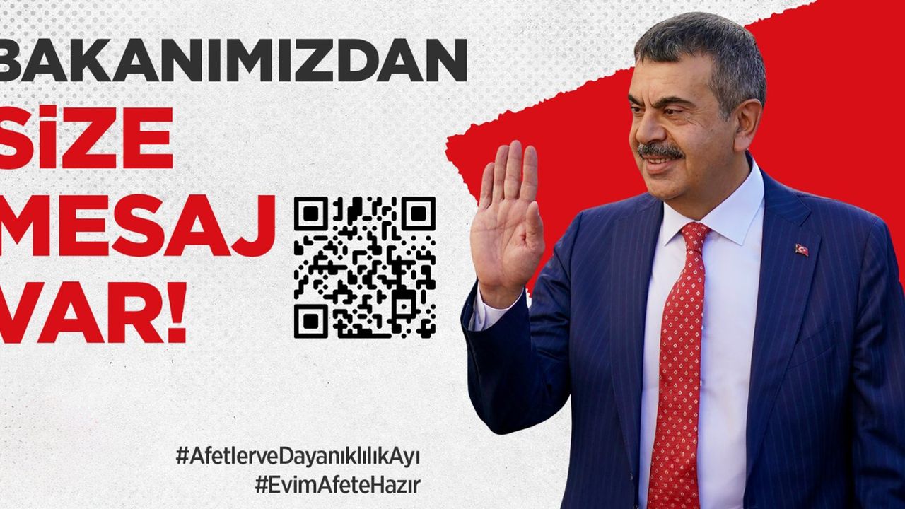 Bakan Tekin, 'Afetler ve Dayanıklılık Ayı' kapsamında öğrencilere ve velilere seslendiği mesajında, afetlere karşı hazırlıklı olmanın önemine dikkat çekti. Bakan Tekin, mesajında, "Sevgili öğrencilerimiz, kıymetli velilerimiz, okullarımızı 'Her Çocuk Bir Fidan' filmiyle açtık. 'Yeşil Vatan-Benim Okulum Geleceğe Çare' etkinlikleriyle yeni eğitim öğretim yılına ilk adımlarımızı hep birlikte attık. Hazırladığımız 10 aylık tematik eğitim takvimimizde Afetler ve Dayanıklılık Ayı'ndayız. Sevgili velilerimiz, öğretmenlerimiz okullarımızda öğrencilerimizle birlikte afetlere karşı alınabilecek önlemleri konuştular. Çeşitli etkinliklerle çocuklarımızın yaşayarak ve deneyimleyerek öğrenmelerine rehberlik ettiler. Sizlerden ricamız, çocuklarımızın okulda öğrendiklerini evde sizinle paylaşmalarına fırsat vermenizdir. Unutmayalım, afetlere karşı en büyük gücümüz bilgi, hazırlık ve dayanışmadır. Birlik ve beraberliğimiz, Türkiye Yüzyılını eğitim, farkındalık ve dayanışmayla kurma idealimizin ilhamıdır" dedi. Bakan Tekin ayrıca mesajında velilere, çocuklarıyla birlikte afetlere karşı bilinçlenmeye yönelik küçük hazırlıklar yapmaları çağrısında bulundu.