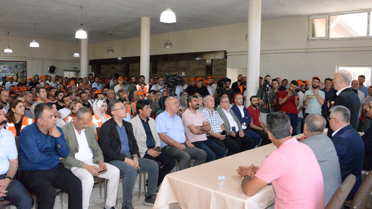Burada konuşan Ergün Atalay, sorunlarını anlatmak için sahalarda olacaklarını belirterek, şunları söyledi: "600 bin işçinin kamu sözleşmesiyle ilgili işçilerin taleplerini sizlerle paylaşacağız. 6 ay süren bir süreç. Bu 6 ay süren bir süreçte, kısa bir zaman evvel hükümet, Kamu Koordinasyon Kurulumuza teklifini verdi. O verdikleri rakamın toplumun kabul edeceği doğru ve uygun bir rakam olmadığını ifade ettik. Geçen hafta çarşamba günü Maliye Bakanlığı'nın önünde Türkiye'deki bütün sendika başkanları, yöneticileri ile beraber, 6 bin arkadaşımızla beraber Anıtpark'ta toplandık. Sıkıntımızı, derdimizi kamuoyuyla paylaştık. Masa susarsa alan konuşur. Aynen bugün de o oluyor. Şu anda geldiğimiz nokta ortada. Sözleşmeden 6 ay sonra ne para kaldı ne pul kaldı. Şu anda kamuya KPSS ile giren arkadaşlarımız yüzde 25 fire veriyor, işe girmiyorlar. 40 senedir böyle bir şey hiç olmadı bu ülkede."