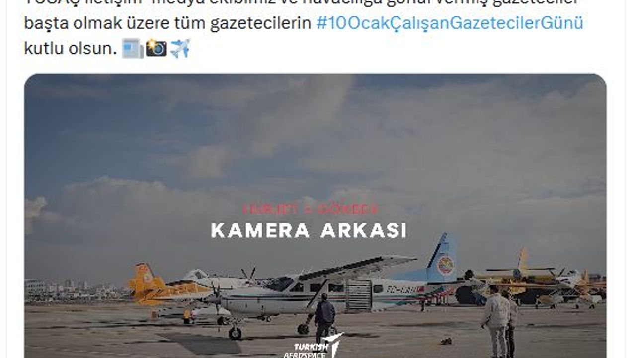 ANKARA, (DHA)- TÜRK Havacılık ve Uzay Sanayii (TUSAŞ), 10 Ocak Çalışan Gazeteciler Günü'nü, milli hava platformlarının görüntülerini kaydeden medya ekibinin hikayesiyle kutladı.