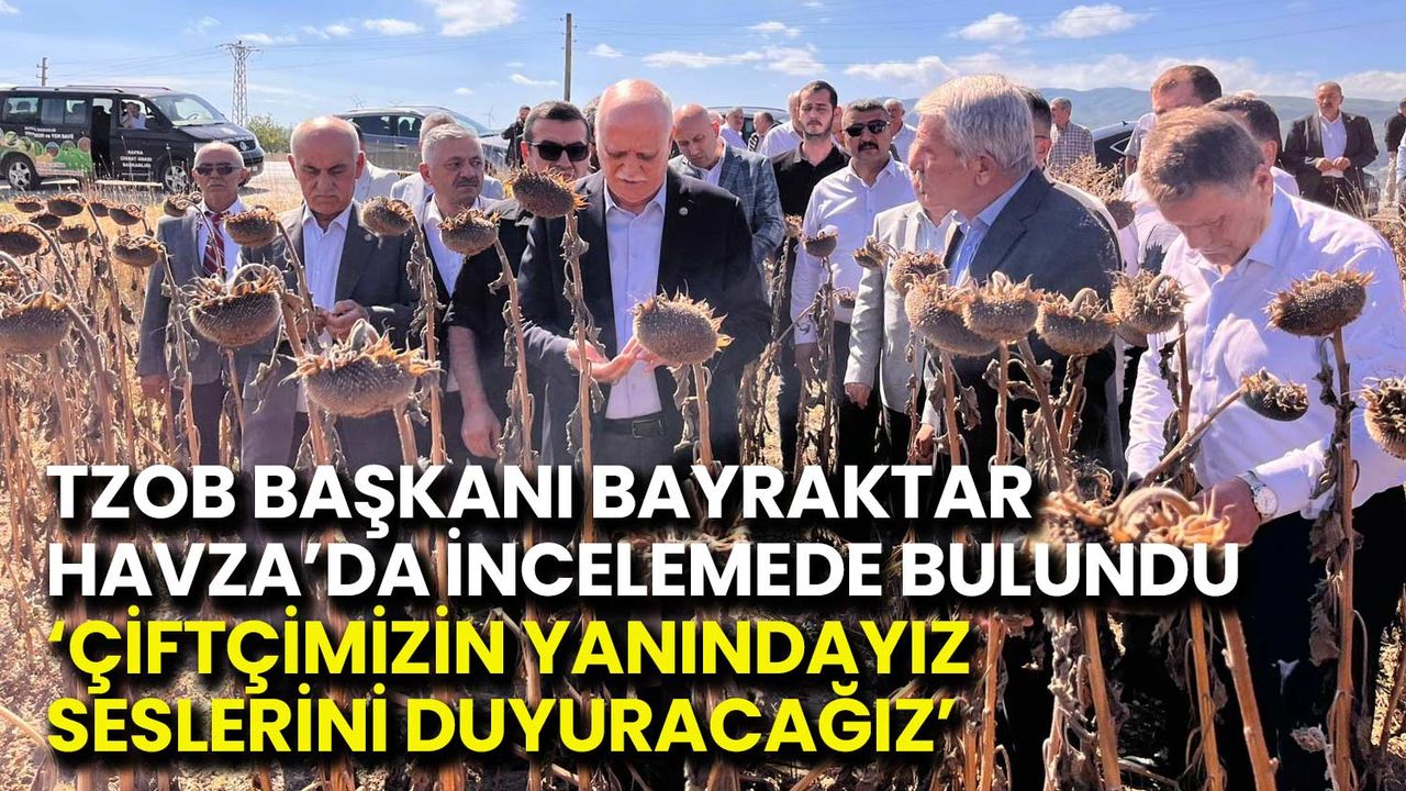 Türkiye Ziraat Odaları Birliği (TZOB) Genel Başkanı Şemsi Bayraktar, Samsun’un Havza ilçesinde kuraklıktan etkilenen ayçiçeği tarlalarında incelemelerde bulundu. Bayraktar, üreticilerin yaşadığı rekolte kayıplarını yerinde gözlemlediklerini belirterek, “Çiftçimizin her zaman yanındayız. Onların sesini duyurmaya devam edeceğiz” dedi.