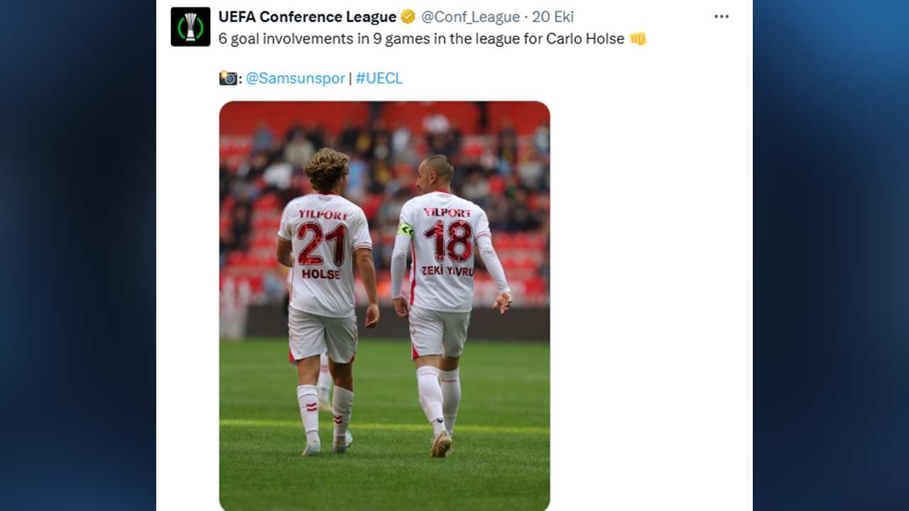 UEFA Konferans Ligi’nin resmi sosyal medya hesabı, bu sezon Samsunspor formasıyla dikkat çeken Danimarkalı futbolcu Carlo Holse hakkında paylaşım yaptı.