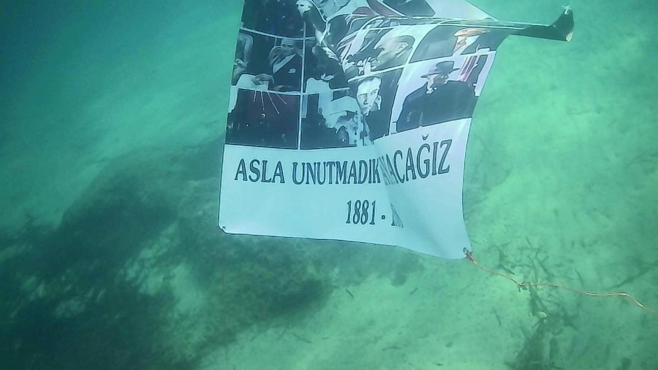İzmir’de yaşayan Dalgıç Yağız Göçmen (26), Ulu Önder Gazi Mustafa Kemal Atatürk'ü, ebediyete intikalinin yıl dönümünde su altında andı. Karaburun ilçesine bağlı Mordoğan’da dalış yapan Göçmen, Gazi Mustafa Kemal Atatürk için hazırladığı pankartı açarak su altında görüntüledi. Ardından yüzerek Mordoğan’a bağlı Taş Adaya çıkan Göçmen, burada bir kez daha pankartı açtı.